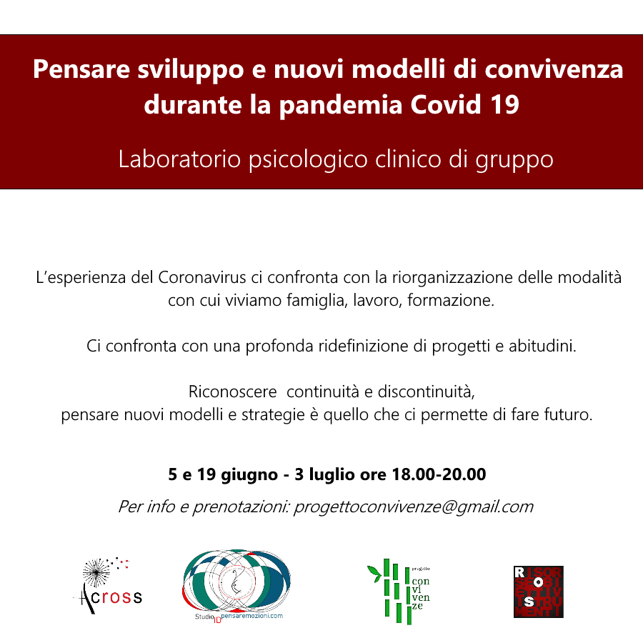 Laboratorio clinico di gruppo on line 19 Maggio 202027 ottobre 2020 ~ pensaremozioni Condividi: Condividi su X (Si apre in una nuova finestra) X Condividi su Facebook (Si apre in una nuova finestra) Facebook Mi piace Caricamento... Correlati Pubblicato da pensaremozioni Vedi tutti gli articoli di pensaremozioni