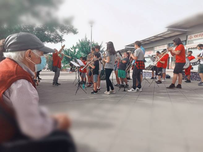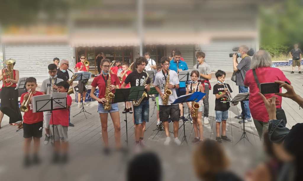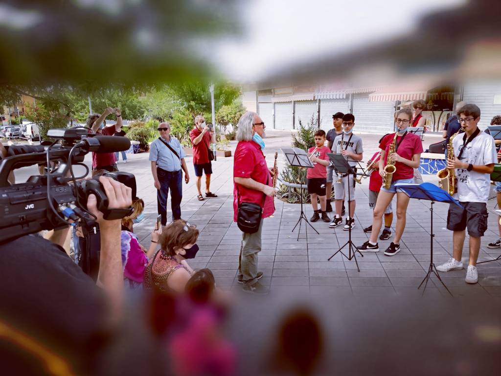 Dopo mezz’ora la redazione de Il Piccione Viaggiatore lascia un operatore e le famiglie al tavolo a chiacchierare, per raggiungere, nel limitrofo quartiere de La Rustica, la Rustica X Band del centro aggregativo che ci ha invitato al concerto in piazza.