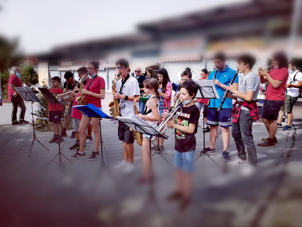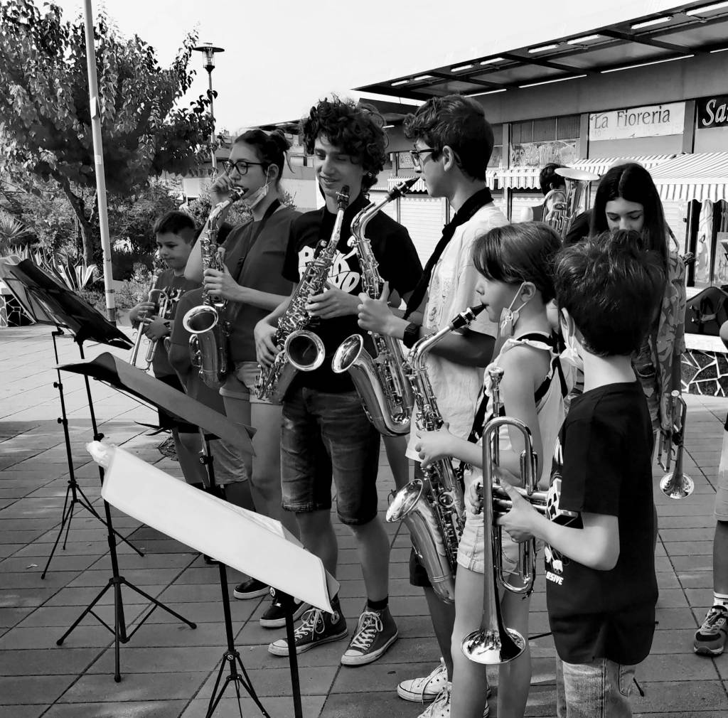 Ci sediamo, con gli altri spettatori, in attesa. Rapidamente gli strumenti cercano le note condivise e inizia un’ora e mezza di piacevoli sorprese. Bambini di 6 anni, assieme a ragazzi di 13, 16, 18, anche qualche signore sulla sessantina, danno vita ad un evento che non è solo intrattenimento. Allietano una piazza di periferia con le note di canzoni che evocano New Orleans con le sue marginalità creative, fatte di conflitti e di faticose riuscite. Ecco. Questo gruppo ci sembra così, impegnato in qualcosa che in questo territorio è tutt’altro che scontato, impegnato nel manutenere un apprendimento per tutta la comunità, una discontinuità che dice che il futuro non è già deciso, che si può sperare, divergere, ci si può divertire.