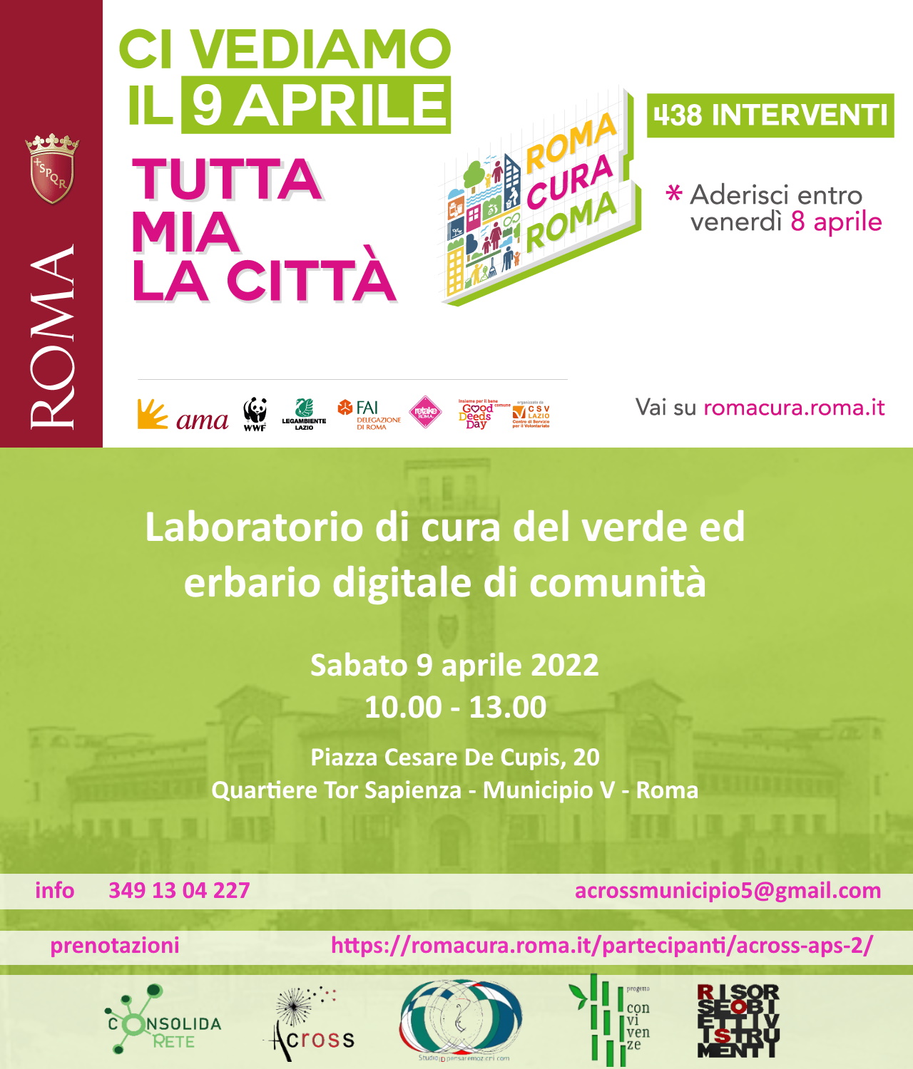 Nell’ambito dell’evento Roma cura Roma promosso dal Comune di Roma, AMA, WWF, Legambiente, FAI, Retake Roma, Good Deeds Days, CSV Lazio, collaboriamo con Across APS, alla realizzazione di un evento di cura del verde e del decoro urbano.