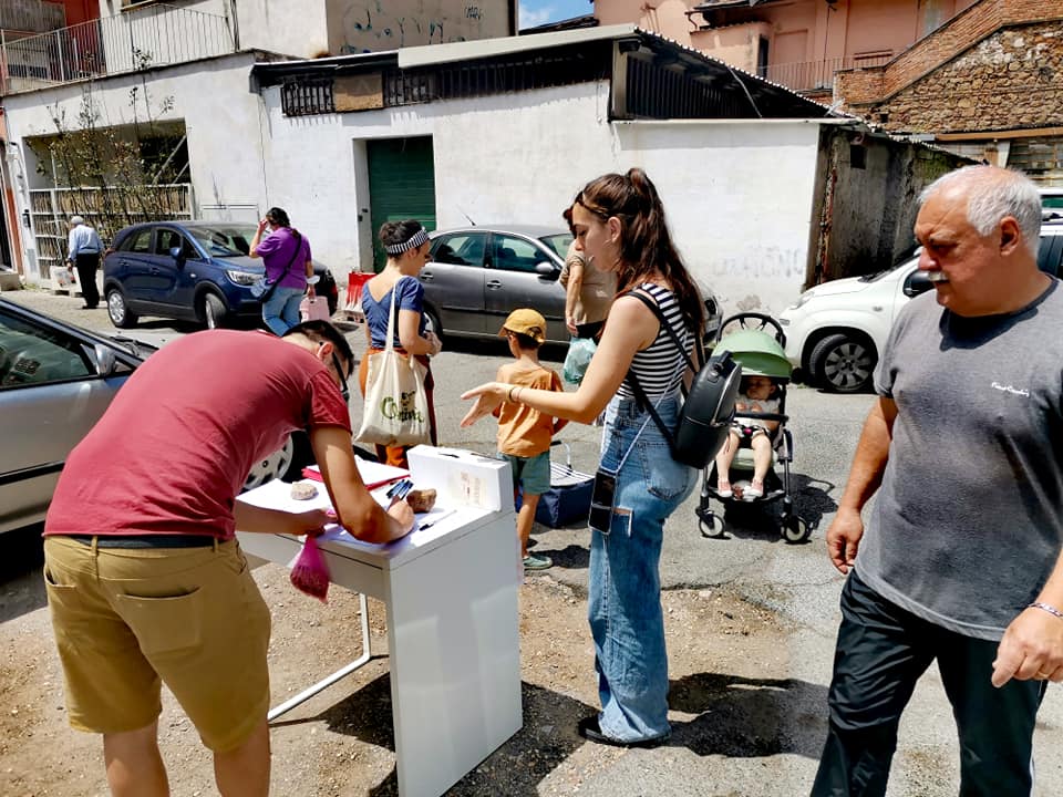 In particolare nel Municipio 5 entriamo in contatto con gruppi di abitanti e associazioni desiderosi di vitalizzare le potenzialità di quartieri e aree facili all’abbandono e al degrado. Al Pigneto qualche cittadino che, guardando dalla finestra, non ha un bel vedere e non si accontenta di lamentarsene; un post su Facebook in un gruppo di quartiere, perché la contrapposizione che vorrebbe i rapporti reali fuori dai social è solo una fisima; il diffondersi di curiosità e il passaparola fanno il resto. Si organizza un collettivo, Collettivo RecuperAmo, denso, competente, snello, capace.