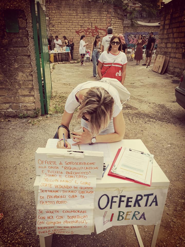 Il Collettivo RecuperAmo fa dell’area degradata di cui si occupa una occasione per occuparsi di rapporti. Si fa spazio a bambini e anziani, associazioni, istituzioni, singoli cittadini. C’è spazio per pubblico e privato, si cercano documenti persi nella storia amministrativa della Capitale, finanziamenti nella responsabilità sociale di impresa delle multinazionali, nelle fondazioni, nei bandi pubblici. Si mappano competenze tra condomini, si cercano sedie da dismettere e pallet assieme a rapporti con i commercianti e le occupazioni storiche di Roma, contributi di artisti di strada e prestigiose organizzazioni. Ci sono progettisti sociali, fotografi, attori, impiegati della pubblica amministrazione – che come Clark Kent e Superman spesso sono la stessa persona – educatori, psicologi, linguisti, informatici, studenti universitari, italiani, sudamericani, belgi. E se viene in mente un’idea e mancano le competenze si cercano con una call su Facebook assieme a un tosaerba per manutenere il giardino del parchetto. L’amministrazione municipale sostiene interessata il movimento, sentendone l’autentico desiderio di sviluppo.
